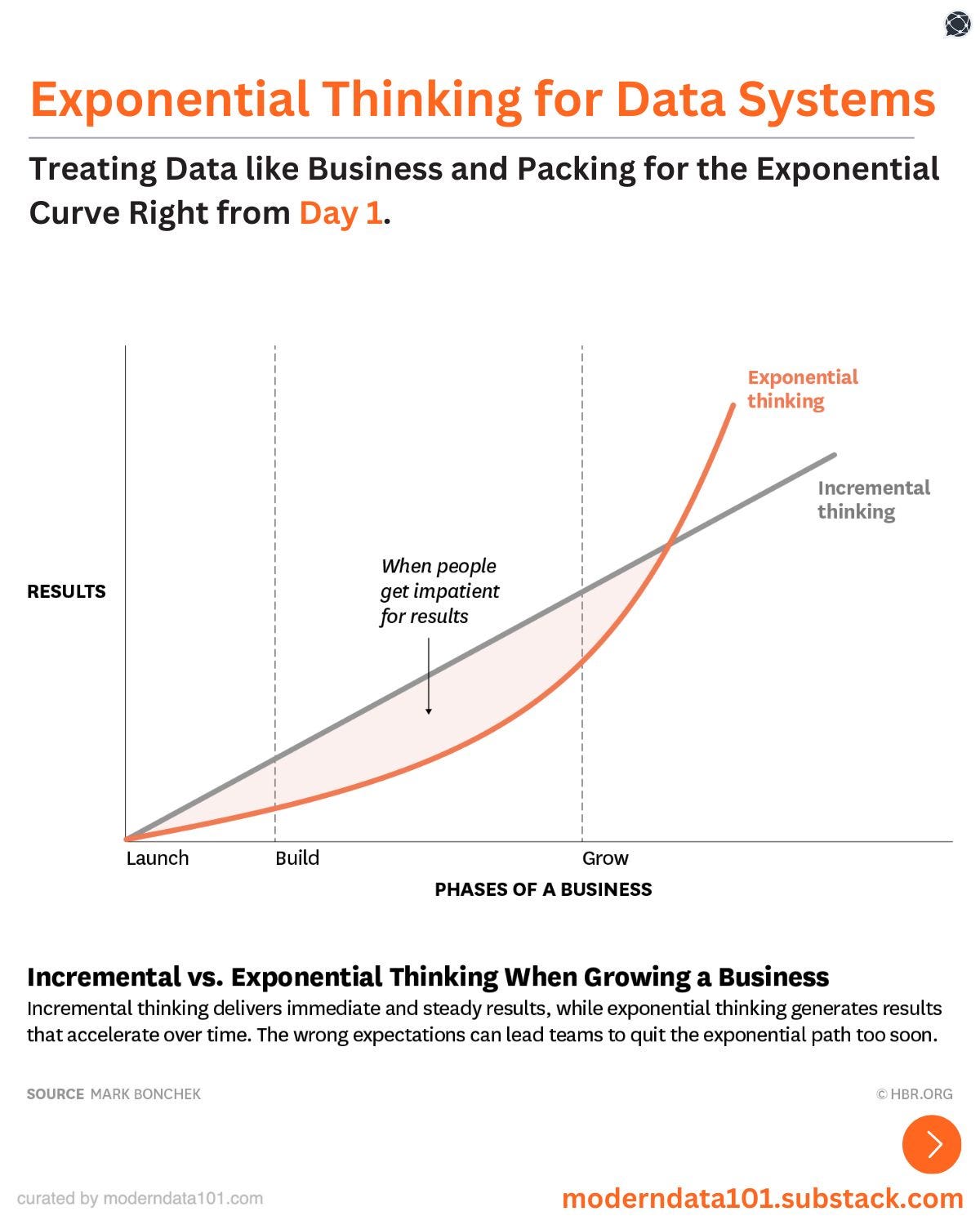 If Zones A, B, and C show how a data product grows from curiosity to impact and then to lasting value, exponential thinking is the mindset that helps this growth speed up instead of slowing down.