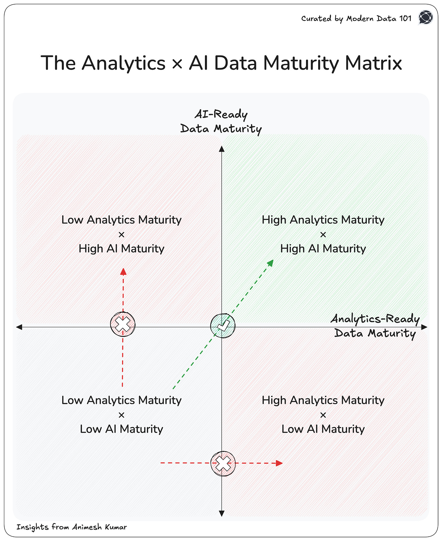 The real mistake teams make is not just confusing analytics data with AI data. It is assuming they share the same maturity path. Once you accept the distinction, that one explains the past and the other simulates the future, you are forced to accept something more uncomfortable: these are two distinct systems with independent paths to maturity.