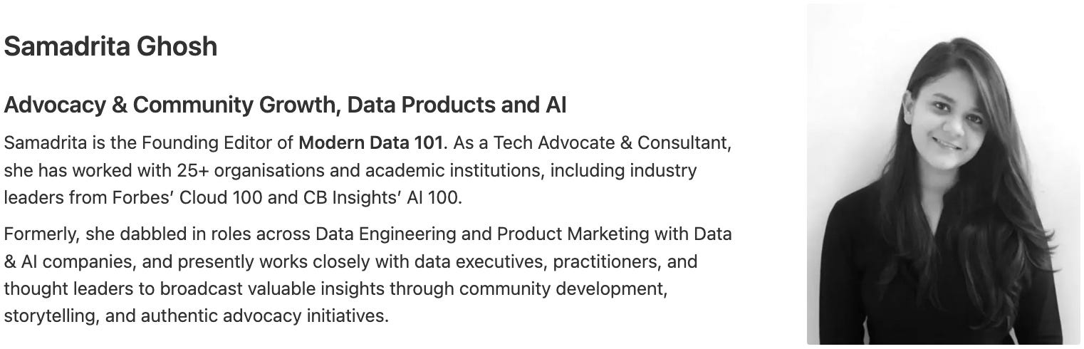 If you have any queries about the piece, feel free to connect with the author(s). Or feel free to connect with the MD101 team directly at community@moderndata101.com 🧡