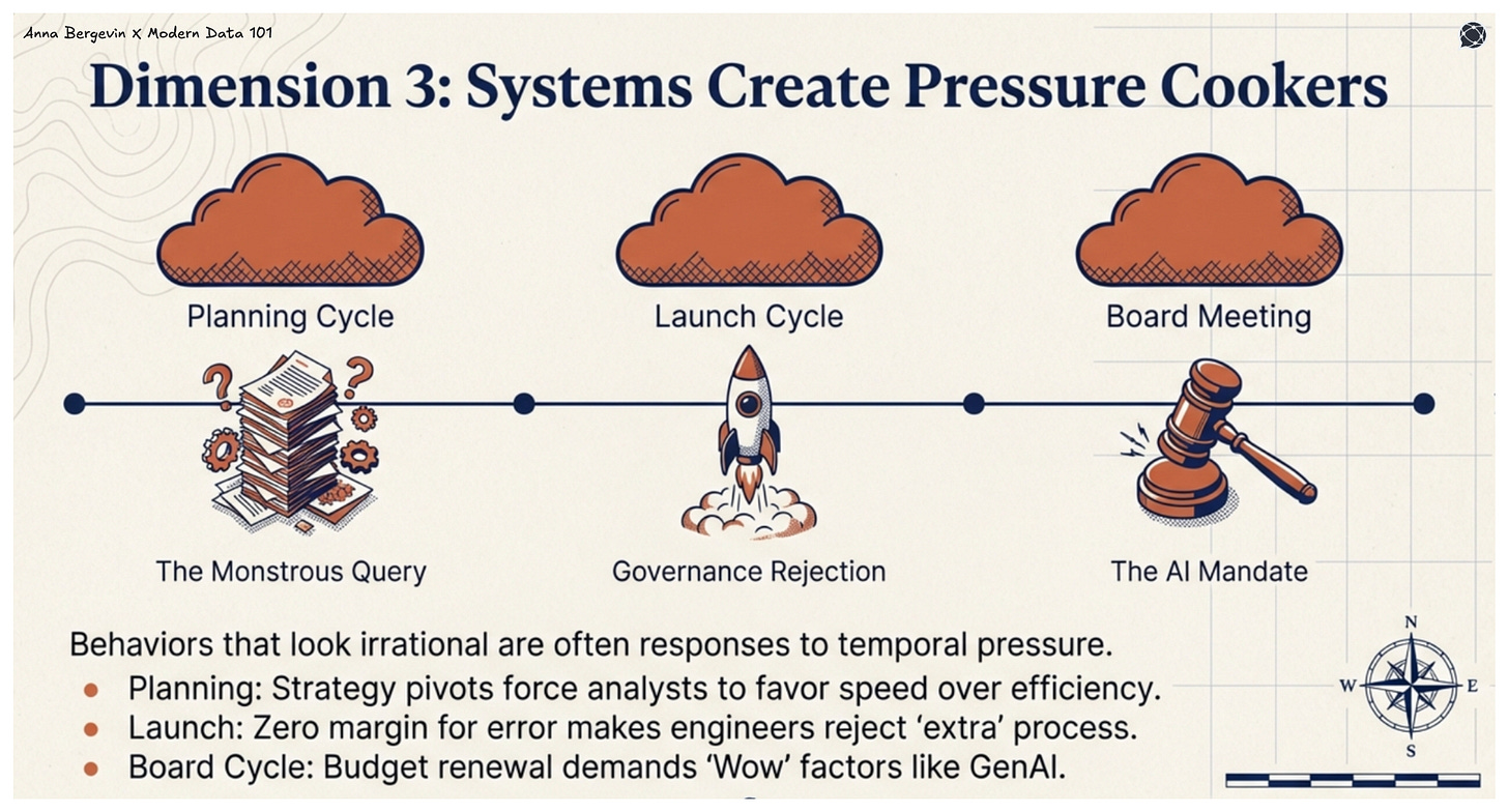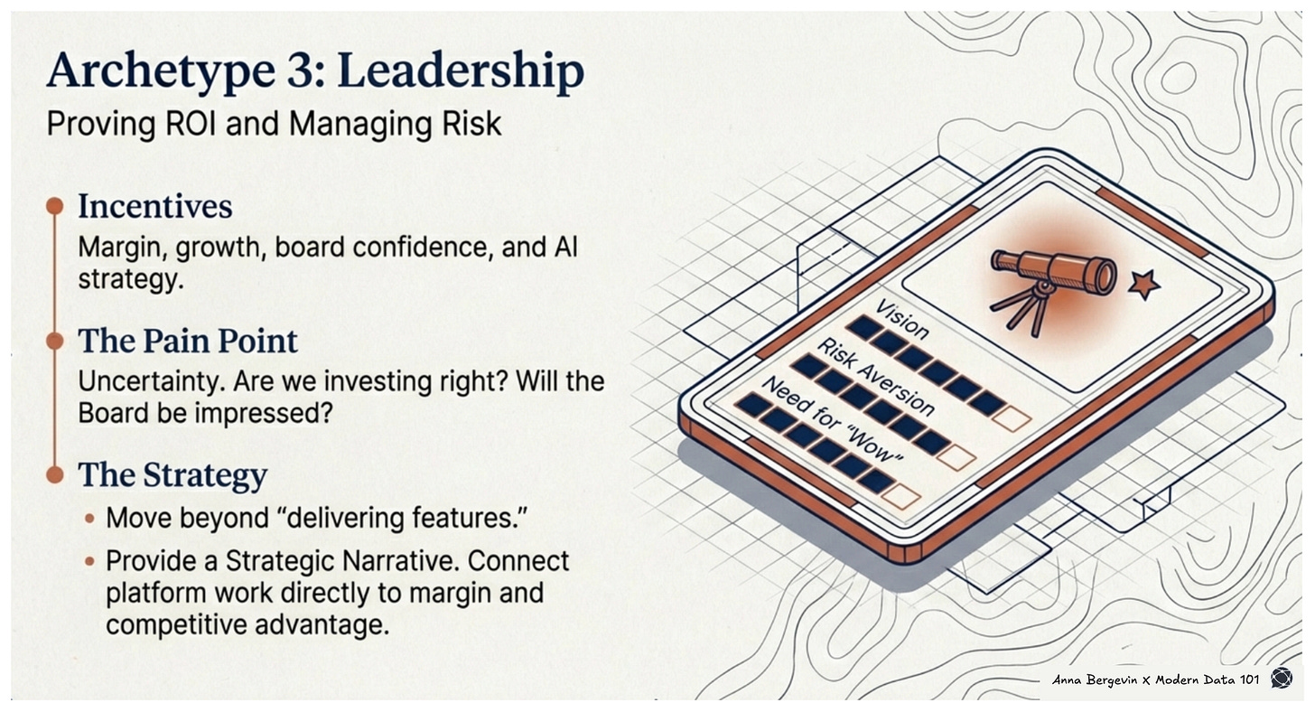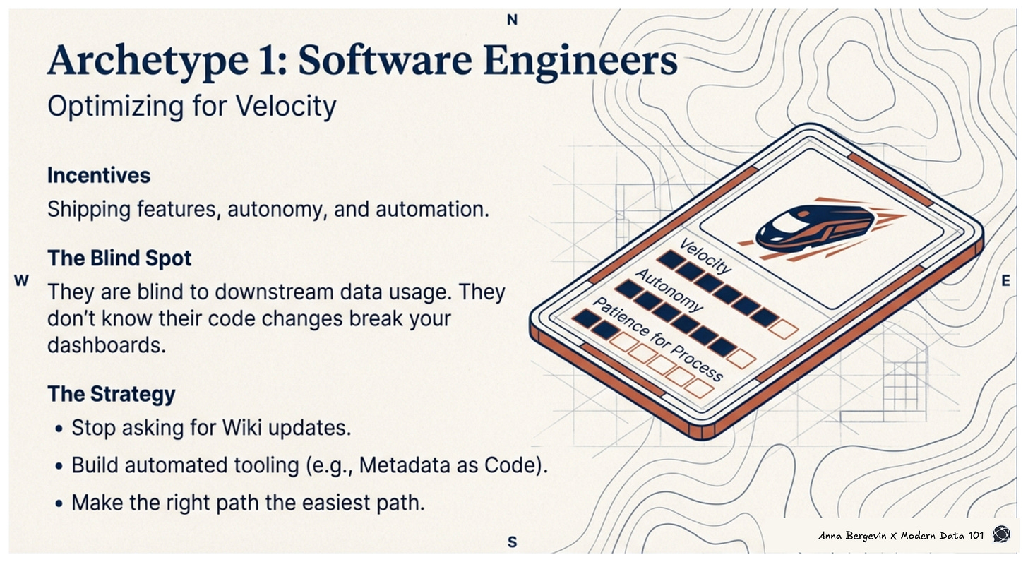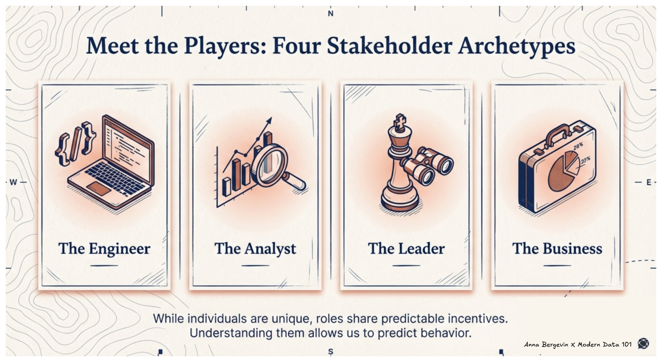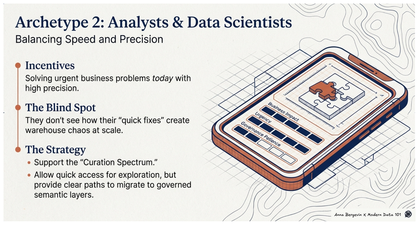 Once you have your incentive map, everything shifts. You stop being surprised when engineers resist governance or analysts bypass your platform. You understand why. And more importantly, you know how to design solutions that work with their incentives instead of against them.