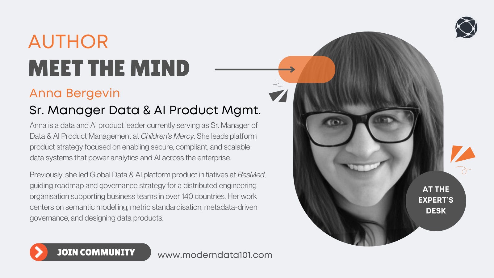 Anna writes and speaks about data product management, sociotechnical AI adoption, and the discipline required to build enterprise data systems that scale on When Data Met Product. She believes the future of AI depends less on model sophistication and more on clear definitions, strong governance, and product-led stewardship of data infrastructure. We’re thrilled to feature her unique insights on Modern Data 101!
