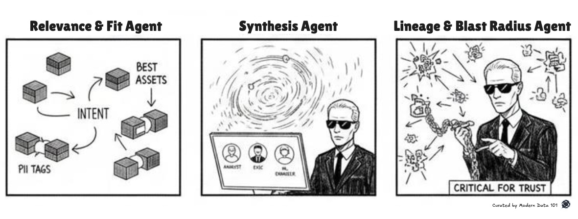 An AI-driven discovery system must be able to evaluate all of these dimensions together, in real time, and in context. And context is what isolated or independent catalogs do not have access to, given the lack of knowledge, context, visibility, and granular logs operating within native data platforms of organisations.