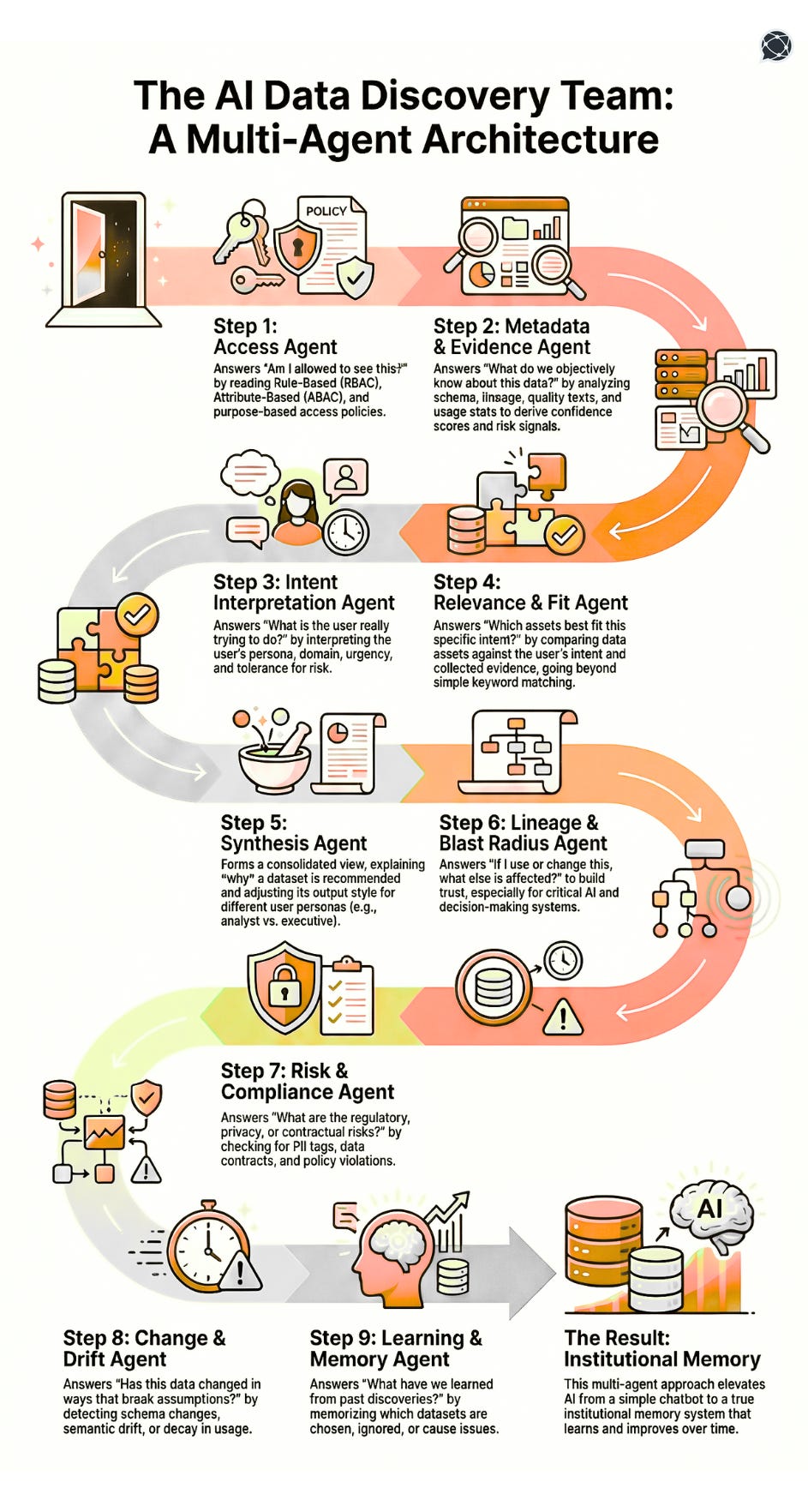 It can weigh intent against evidence, adapt recommendations based on persona and risk tolerance, and explain why one dataset fits a goal better than another. The quality of its answers becomes a function of the quality of the signals it consumes.