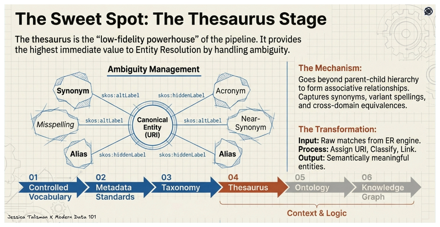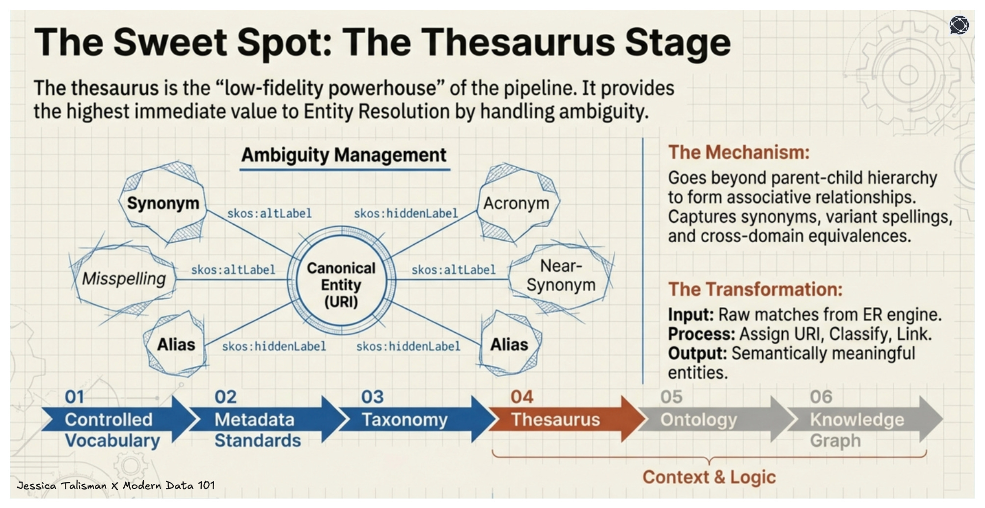 For semantic engineers, this means our thesaurus expertise directly determines entity resolution quality.