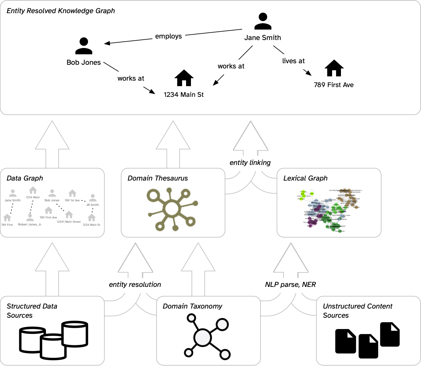 Each stage builds towards maturing semantic systems to support the meaningful classification of resolved entities. Discovered relationships can be mapped to edges, where the ambiguity inherent in real-world data resolves through principled knowledge organization.