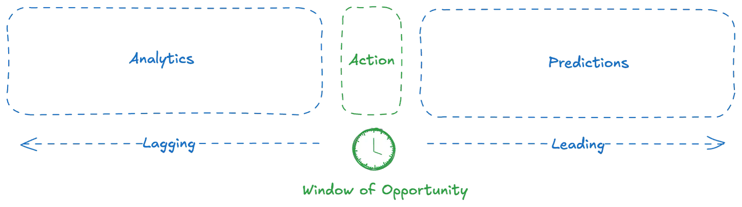 This is the orchestra. The analytics team is playing classical, AI/ML is improvising jazz, and operations is still tuning their instrument. The conductor, if there is one, is buried under unread dashboards and unclicked PDFs. What we call “insight” today has a half-life and in most companies, we waste it. You get a signal, you analyze it, and you build a neat chart. Maybe you even present it.