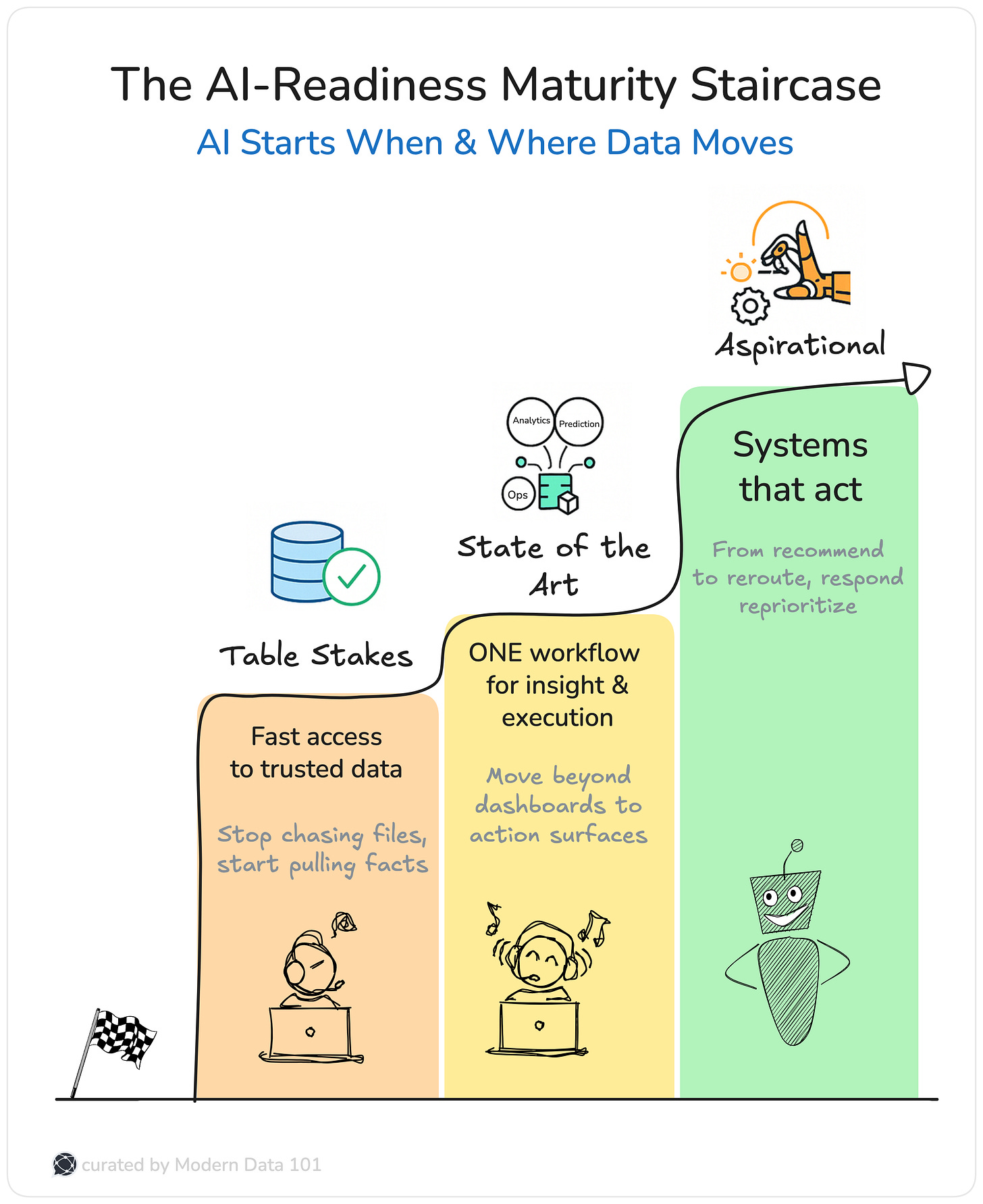 Ask ten companies what AI-readiness means and you’ll get ten different answers. For some, it’s dashboards with predictive insights. For others, it’s natural language agents that talk like product managers and execute like engineers. Everyone has their own definition of AI. And that's the problem.