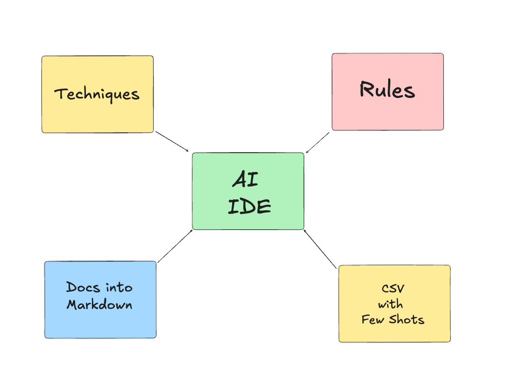 Bonus: on the same ChatGPT conversation, add some small CSV outputs of your desired outcomes and ask it to include those in the Markdown docs as few shot examples, so you can set a success criteria for the AI